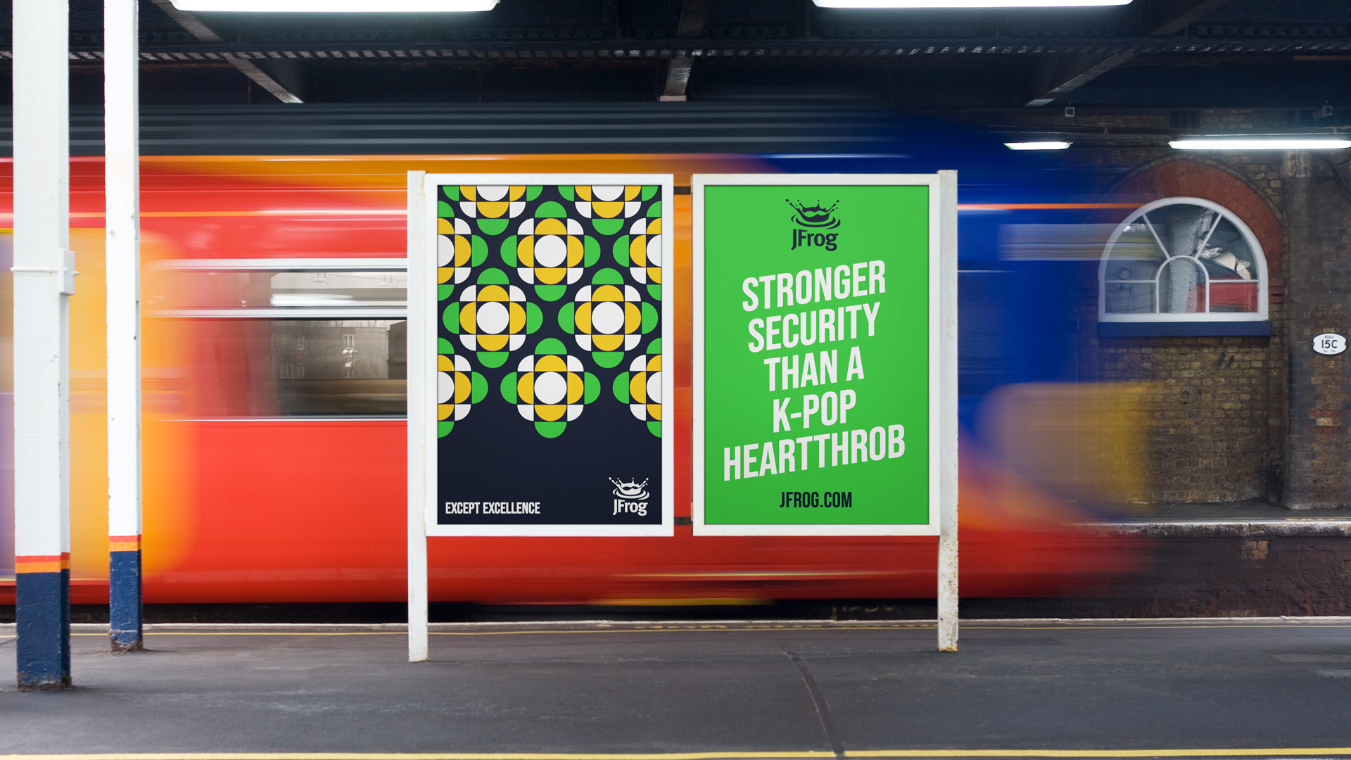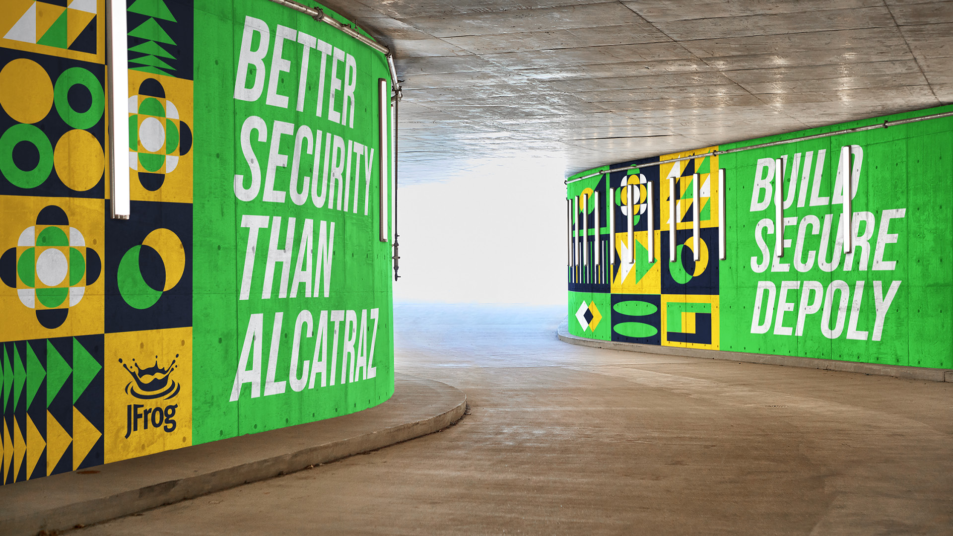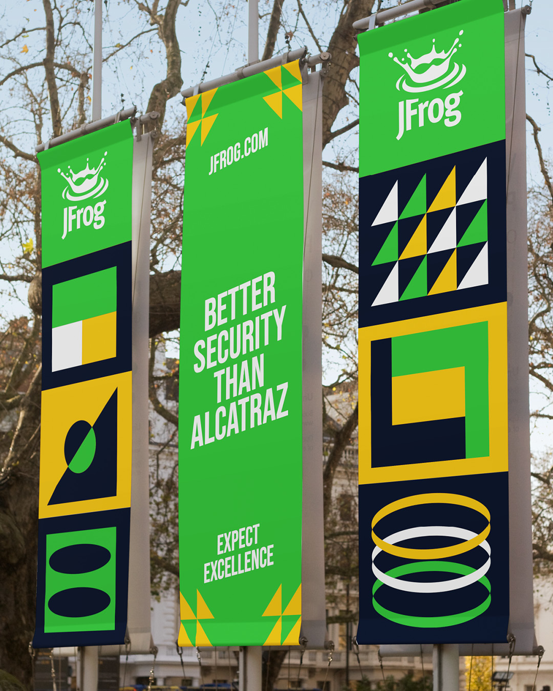 The campaign strategy, customer-centric and digital-first, guided all creative assets to align with JFrog’s brand. A unique, shape-based design system unified product visuals for brand consistency and recognition. Beyond digital, specialized event placements like OOH and parking garage takeovers maximized reach and impact.