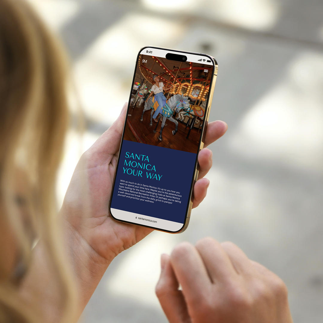 A tailored photography style was developed to visually express Santa Monica’s refreshed brand and capture the city’s distinct personality. Through a dedicated photo and video shoot, the creative direction focused on authentic moments, diverse perspectives, and the natural energy of the destination. The intent was to showcase real people, real experiences, and the effortless blend of coastal and urban life—creating imagery that feels alive, inspiring, and unmistakably Santa Monica.